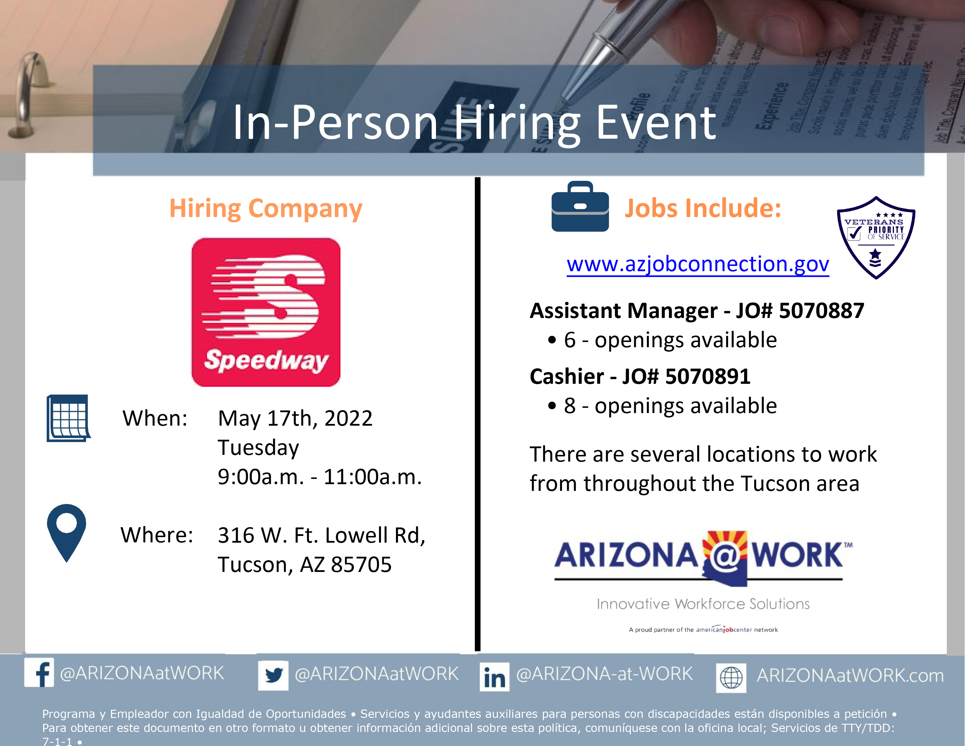 Arizona Work On Twitter Speedway Is Hiring Assistant Manager And Cashier Positions In Tucson Attend The Hiring Event Tomorrow Morning Https T Co Paqoxkffyb Https T Co Lf2ffcia7q Twitter